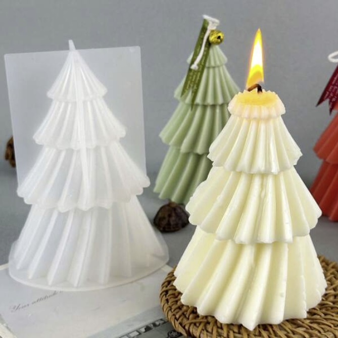 Silicone mould ideal for crafting Christmas-themed candles, soaps, and more, with a Geometric Christmas Tree design.