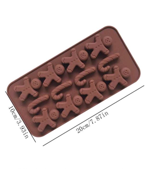 An 8-cavity silicone mold featuring Christmas-themed shapes, including gingerbread men and canes, perfect for creating a festive variety of candles, soaps, or decorations.