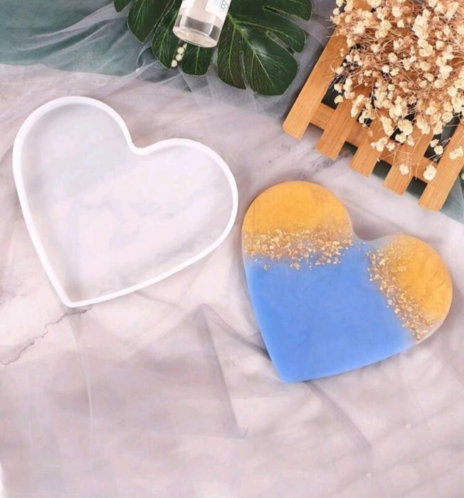 Silicone mould that can be used to create a heart-shaped tray using plaster, epoxy resin etc.