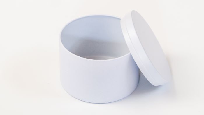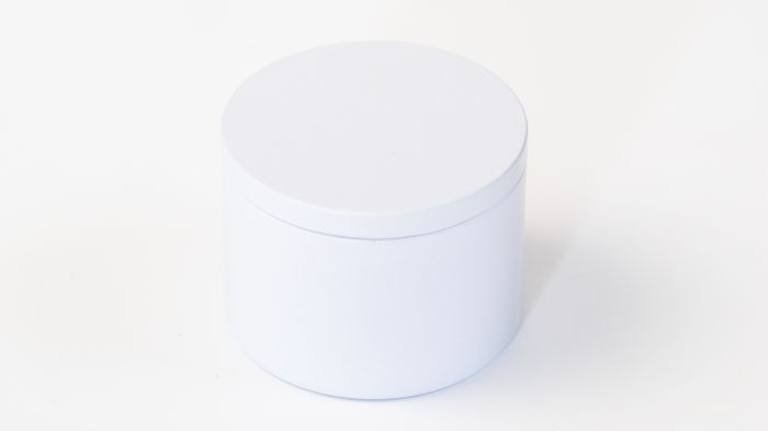 White tin jar for 10cl capacity. Outer diameter - 79mm, outer height with lid - 60mm, inner height - 50mm (for wicking). Same color tin lid is included!