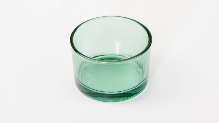 Transparent green glass jar. Outer diameter - 74mm, outer height - 49mm, inner height - 37mm (for wicking). Wooden lids are sold separately!