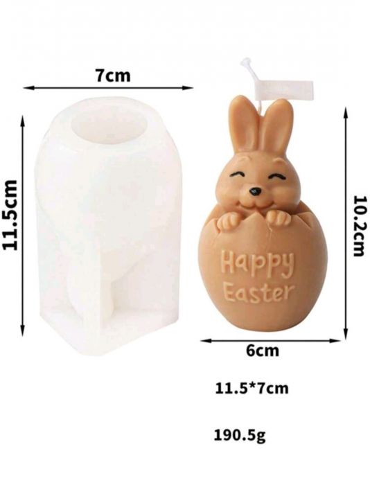 Silicone mold in the shape of a bunny in an Easter egg, perfect for Easter-themed decorations.