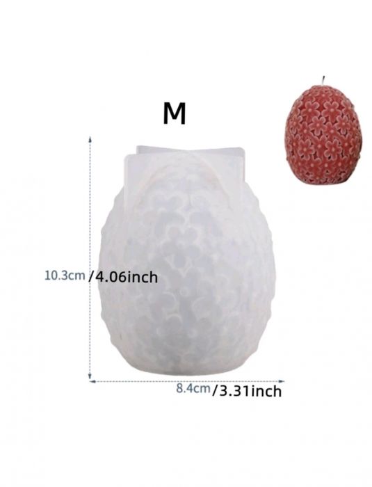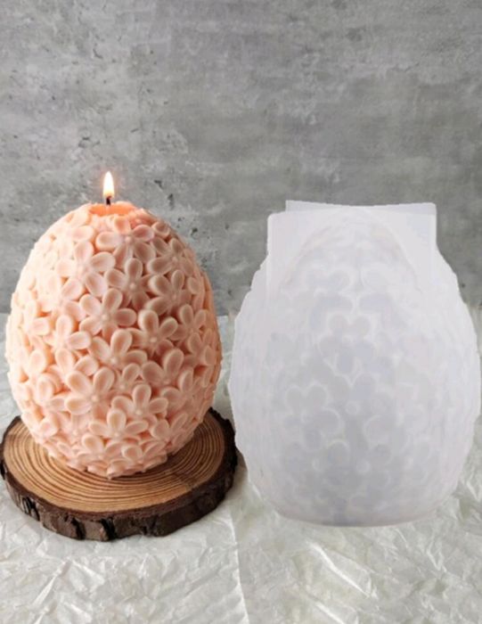 Silicone mold in the shape of a an Easter egg with flower details, perfect for Easter-themed decorations.