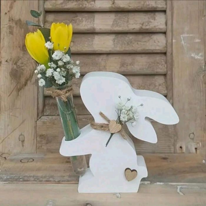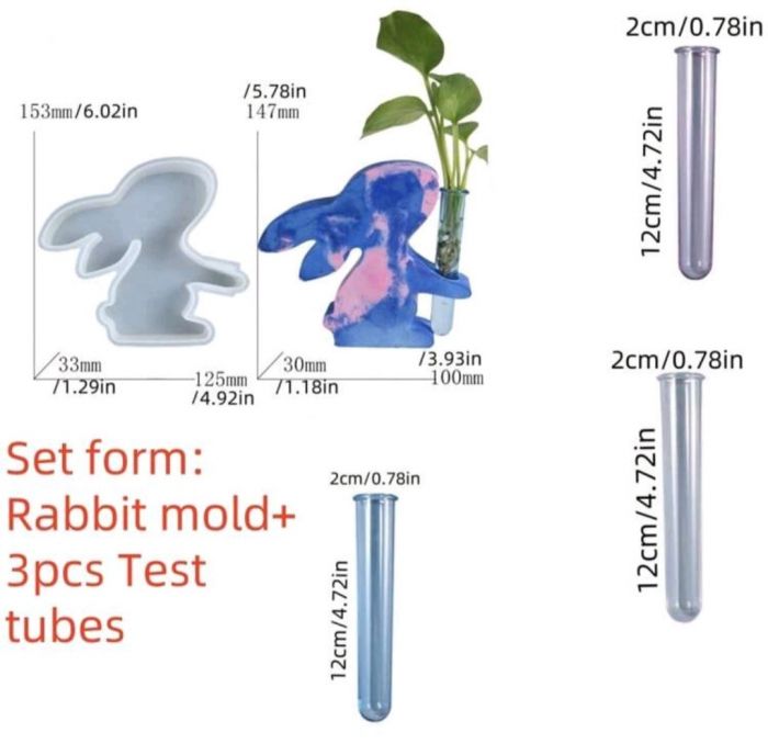 Silicone mold in the shape of a bunny holding a vase, perfect for Easter-themed decorations and plaster creations. Includes 3 tubes!