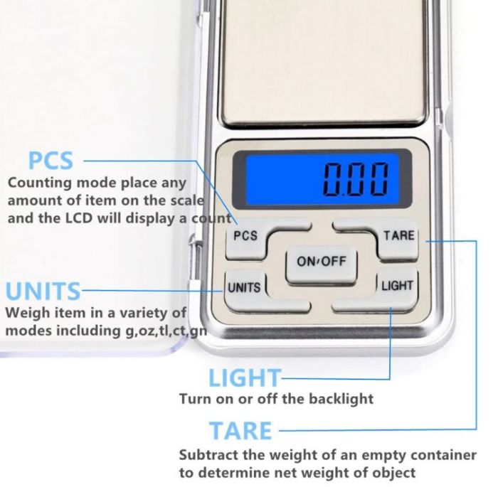 2.Wait until ''0.00'' is displayed. 3.Put the object(s) on the weighing platform. 4.Using the [UNITS] key.you can switch between the weighing units. 5.Using the [LIGHT] key ,you can turn on or off the back light. |