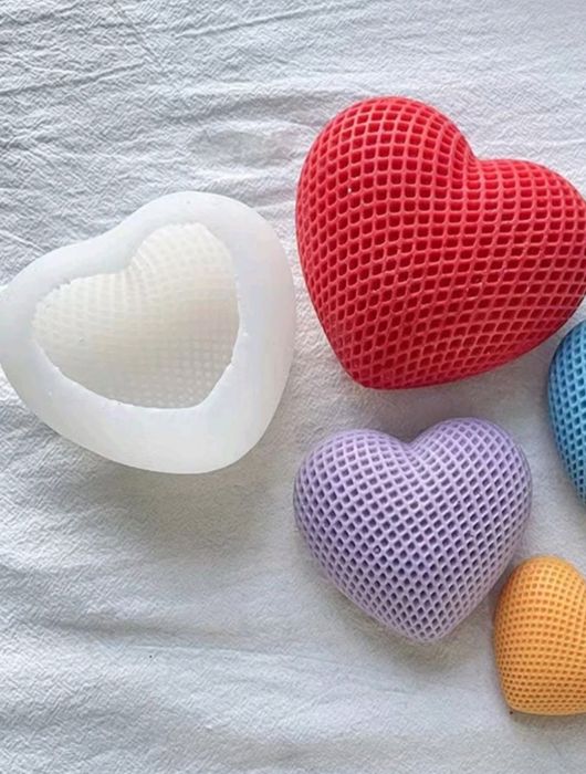Silicone mould ideal for crafting Valentine-themed candles, soaps, and more, with a 3D heart design.