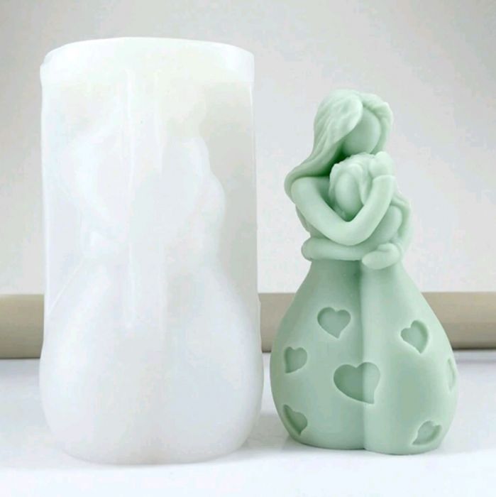 Silicone mould that can be used to create a figure of a mother and her child, embracing. |